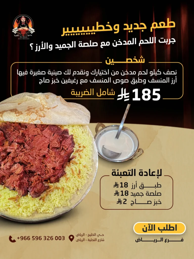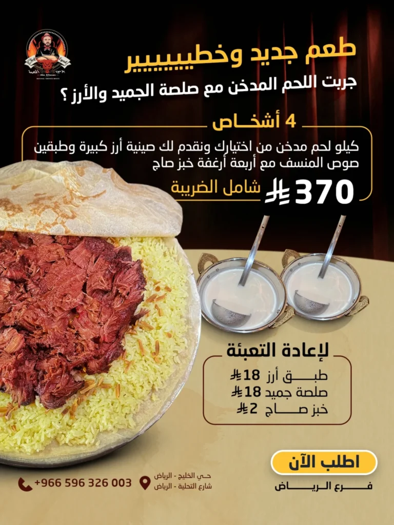 كما يتميز بالكرم العربي الأصيل حيث يقوم بتقديم المقبلات والسلطات والصلصات حسب رغبتكم مع امكانية اعادة طلبها مجانا.
