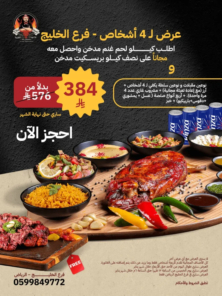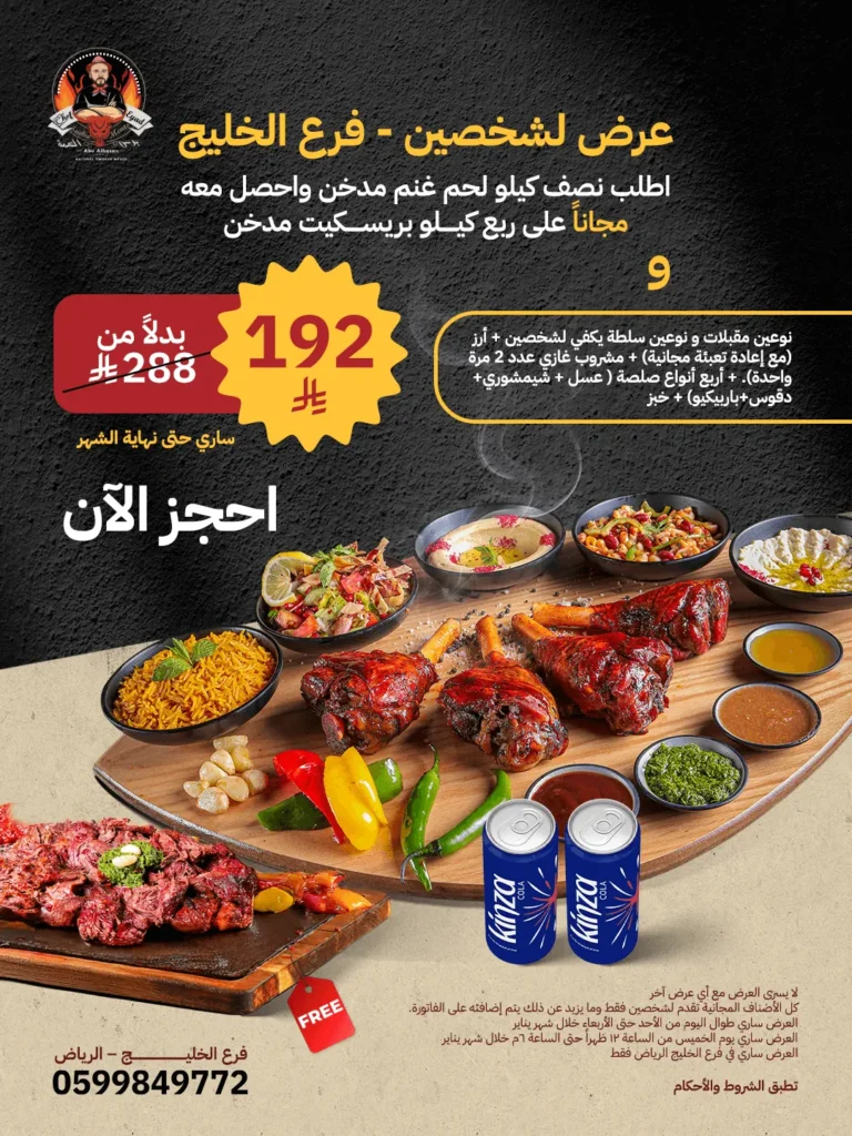 أشهر أطباقنا المدخنة، والصوصات الخاصة من مطبخنا، صارت متاحة لحفلاتكم، اجتماعاتكم، أو أي مناسبة تحبون تحتفلون فيها على أصولها.
