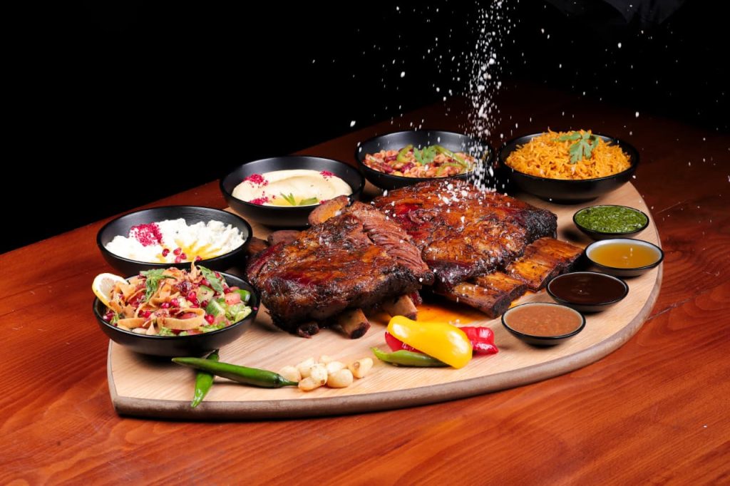 Chef Eyad special mix of spices and somoked for 12 to 14hrs served with 5 Kind of sauce plus, Variety of Salads & Appetizers Rice & Soft Drink.